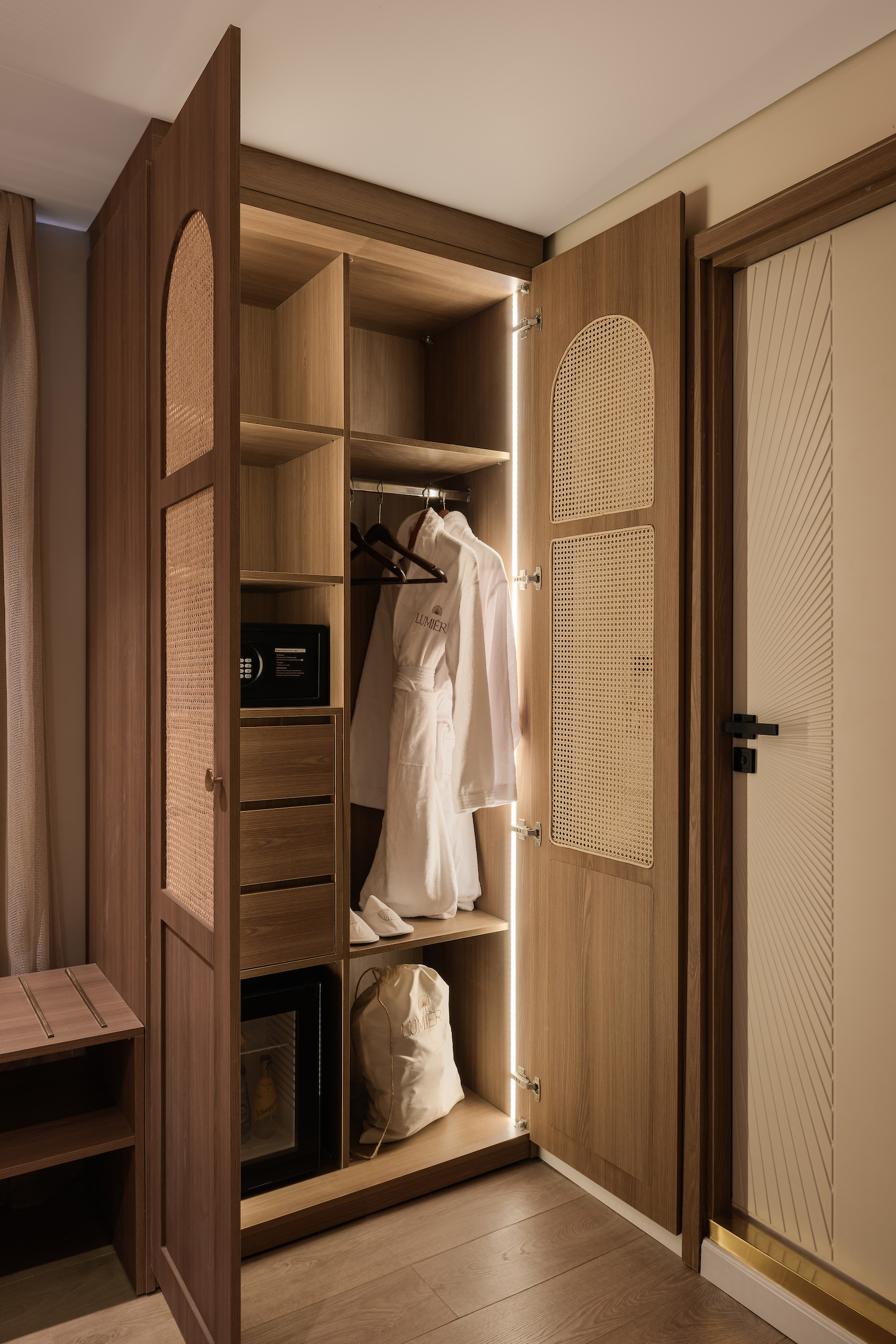 Experience exceptional comfort in the elegantly designed cabins aboard Lumière. Each room and suite is thoughtfully crafted as a serene, stylish retreat, a place to unwind and reset after a day of discovery along the Nile. With just eight cabins on board, Lumière offers an intimate setting: five Luxury Cabins, two Junior Suites, and one Lumière Suite. Every space is designed with attention to detail, ensuring privacy, ease, and a stay that feels both personal and considered.